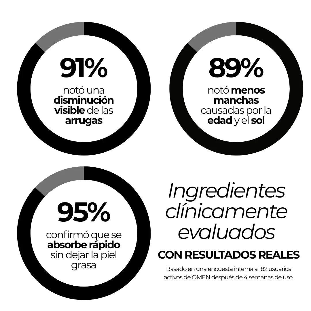 Formulado con ingredientes clínicos que sí funcionan en piel más gruesa y expuesta al estrés. OMEN es diferente: rápido, potente y sin brillos.